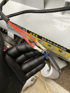 新しいコンデンサーには端子が装着されており、不要なので端子を切ります。
